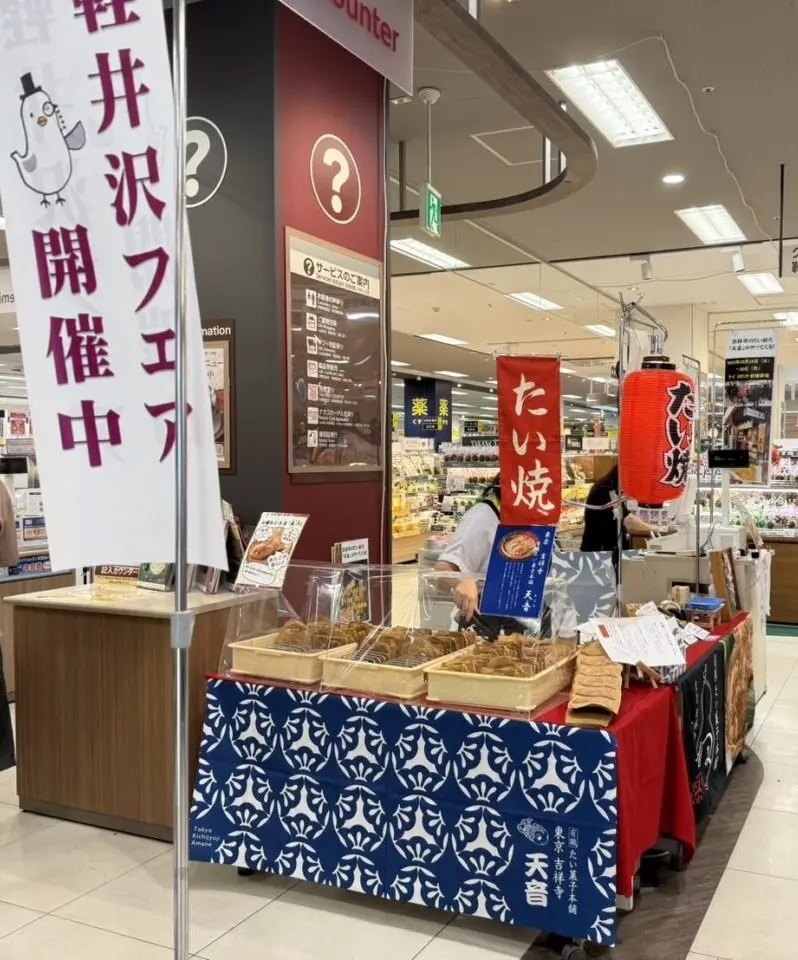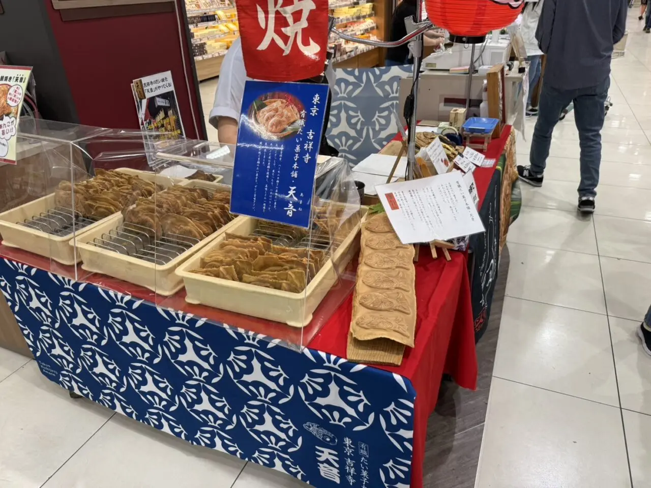 催事場では、焼き立てのたい焼きがずらりと並べられており、食欲をそそる香りが漂っていました。