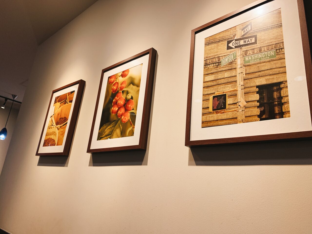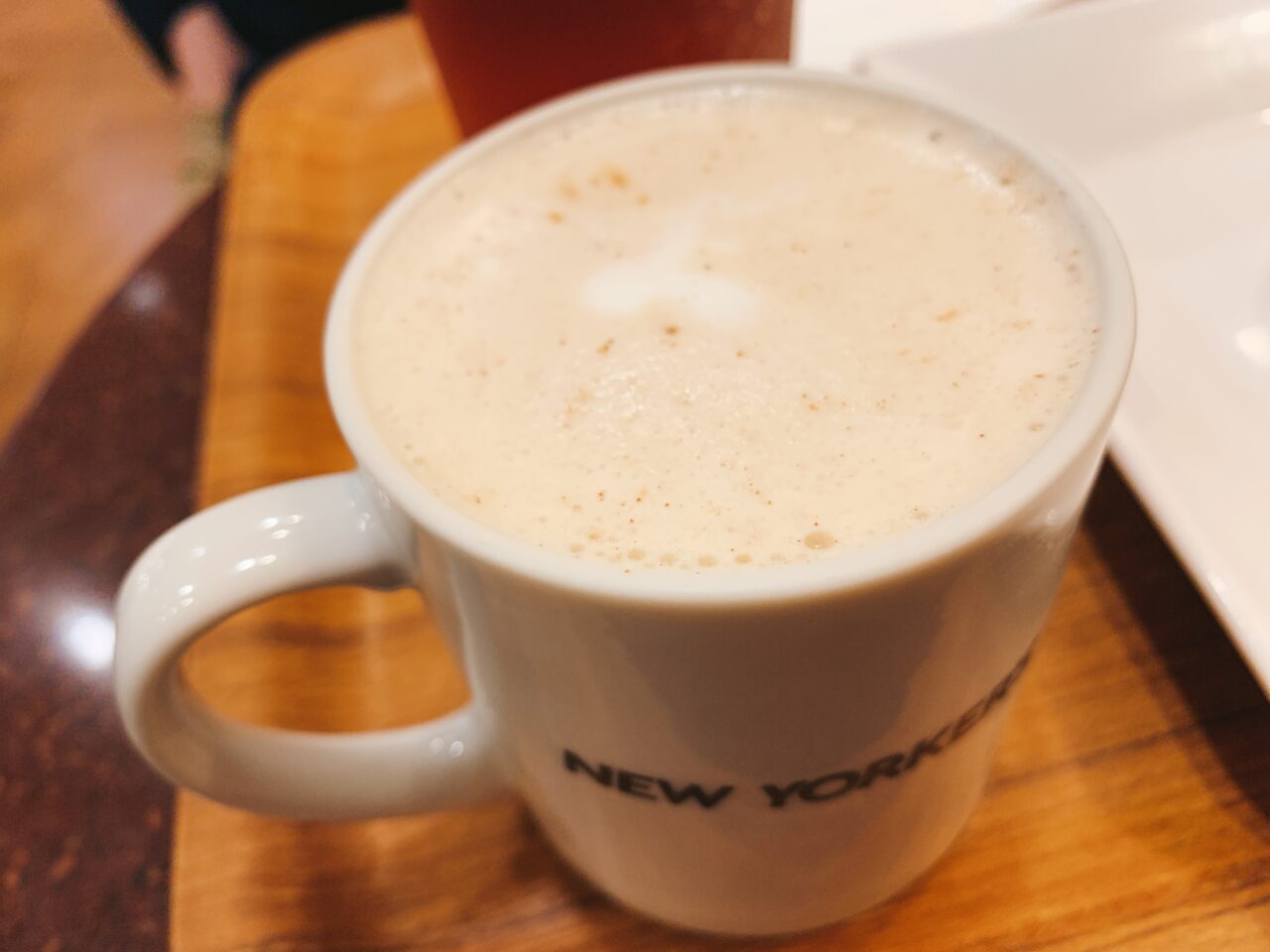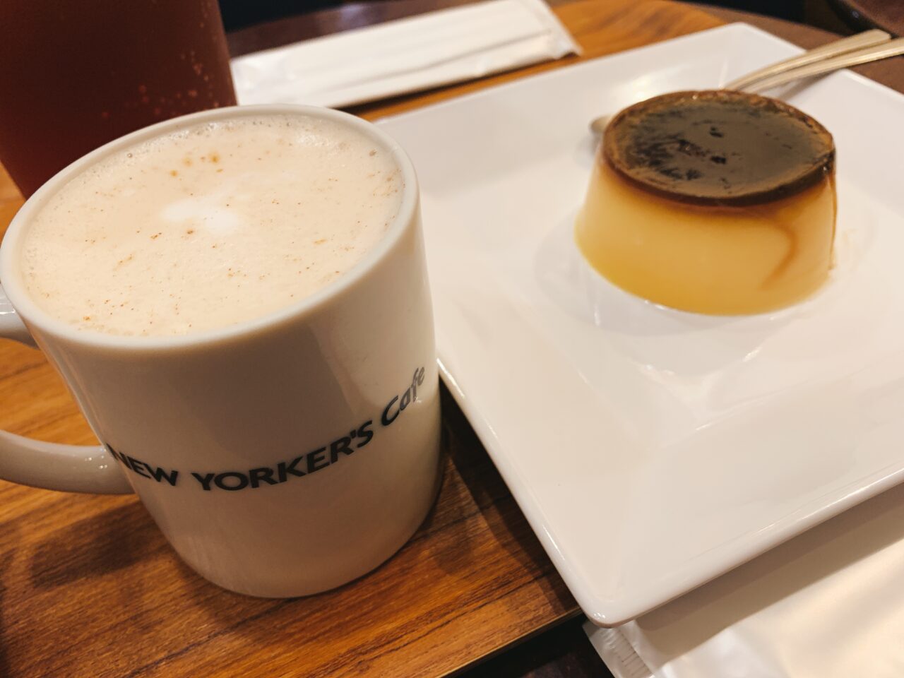香りの良いコーヒーと滑らかなミルクの泡が、デザートタイムをさらに優雅なものにしてくれました。店内にはNYの風景を思わせるおしゃれな写真が飾られており、都会的な雰囲気の中でゆったりと過ごせます。