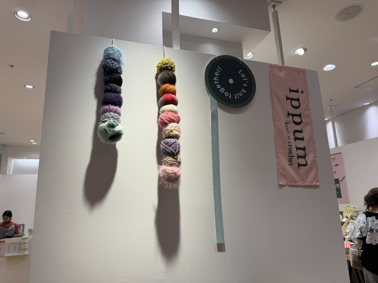 隣接する「ippum knit n crochet」さんには、韓国から直輸入されたユニークな毛糸や、その糸を使ったハンドメイドの作品が並んでいました。