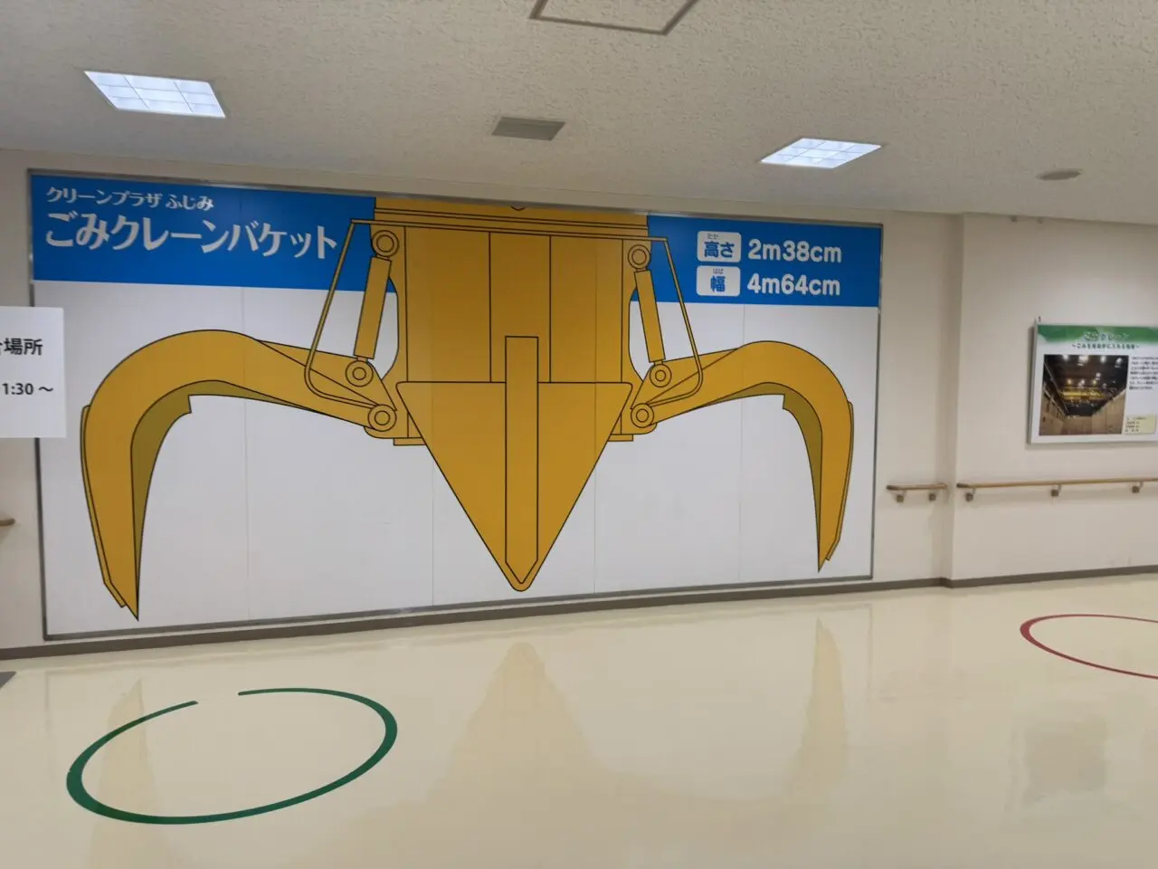 巨大ごみクレーンバケット: 会場内には、ごみ処理場で活躍する巨大なクレーンのバケットのイラストが展示されており、その大きさに圧倒されます。