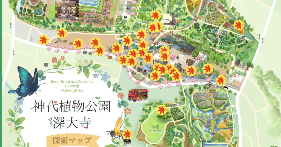 「神代植物公園&深大寺公式探索マップ」では、紅葉シーズンに合わせて、おすすめスポットを巡るデジタルスタンプラリーが開催中です。