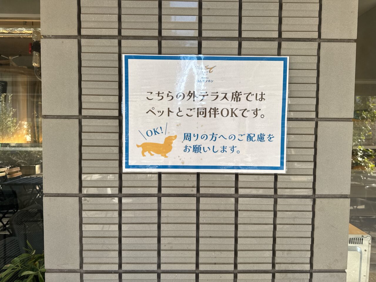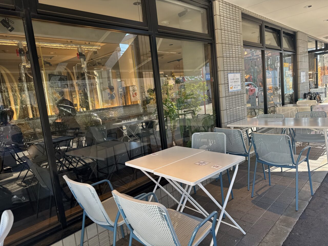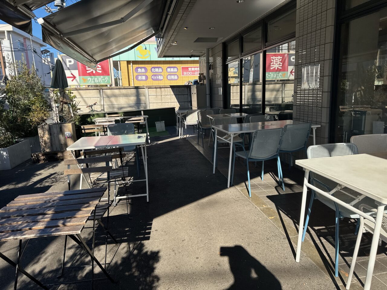 天気の良い日には、広々とした外のテラス席を利用できます。こちらの外テラス席はペット同伴OKのようですので、お散歩途中に立ち寄るのもおすすめです。ただし、周りの方へのご配慮をお願いします。