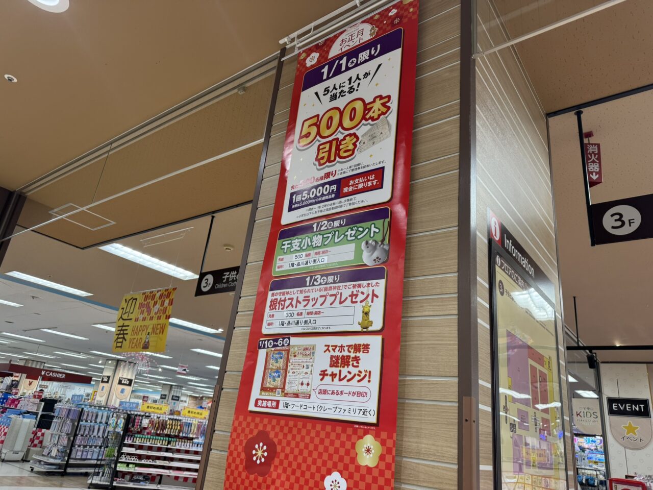 元日の「500本引き」で新年の運を試し、その後はブランチ調布まで足を伸ばして「新春 運試し大抽選会」のレシートを集めるのも良いかもしれませんね。