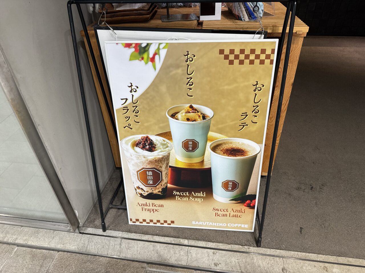 店頭の看板で一際目を引いたのが、年末年始限定の「おしるこ」シリーズ。今回はその中から、温かい「おしるこラテ」をいただいてきました!