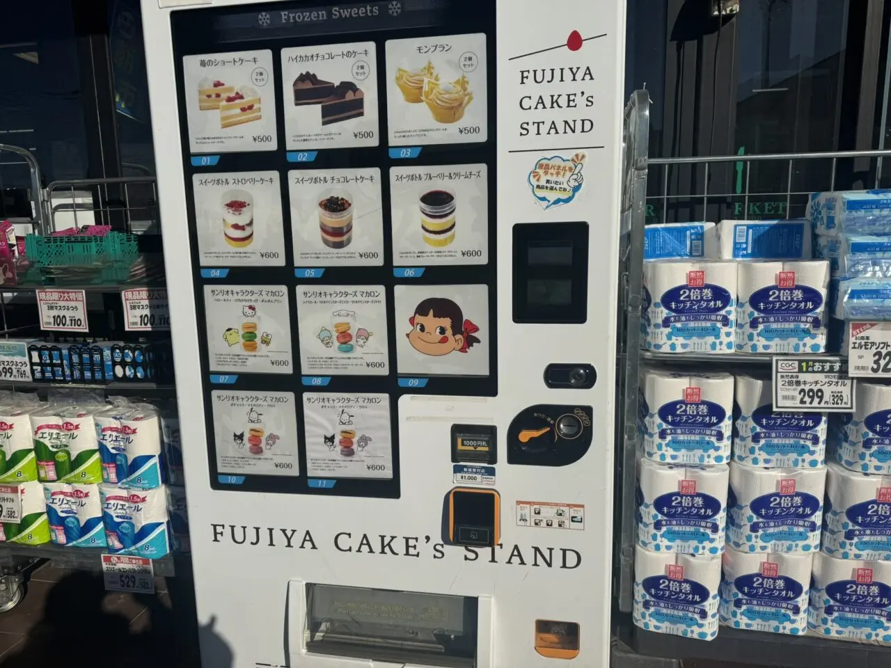【調布市】不二家のケーキが自販機に!「トップフレッシュマーケット 深大寺店」に冷凍スイーツスタンドが登場。