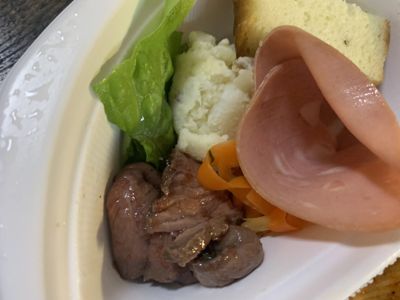 豪華なデリ(前菜): お肉のローストやハム、ポテトサラダ、キャロットラペなど、彩り豊かな前菜が少しずつ楽しめます。どれも丁寧に作られていて、ワインとの相性も良さそう!