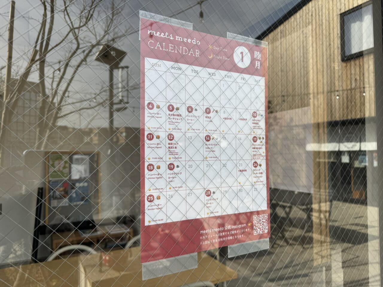 2026年2月の初めに伺って、まだ2月のカレンダーは掲示されていませんでしたが、Instagramに投稿がありました。