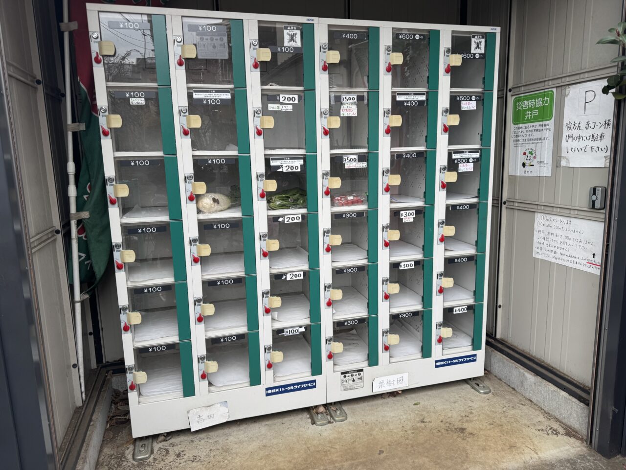 こちらの自販機は、お金を入れてボタンを押すと扉が開くアナログなロッカー式です。
