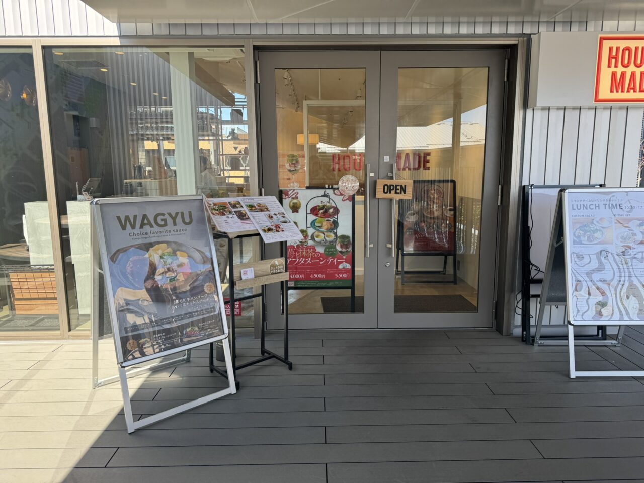 カフェ・レストランの「HOUSE MADE」では、ボリュームのある「WAGYU」ハンバーグや、彩り豊かなカスタムサラダなどが提供されています。 10時30分から17時までとランチタイムが長く設定されており、遅めの昼食にも対応可能です。
