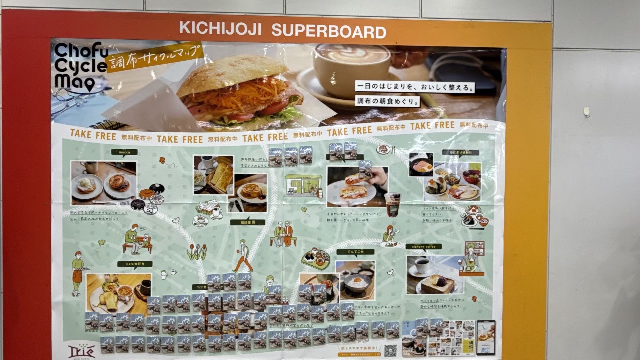 掲示板には各店舗のメニュー写真や、店内の雰囲気が伝わるイラストも掲載されており、吉祥寺を訪れる人々に調布の魅力を発信しています。 地元・調布の素敵な朝食スポットを改めてチェックする良い機会になりそうです。